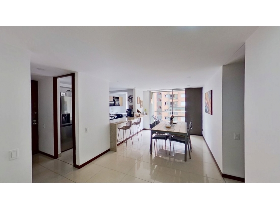 El apartamento está ubicado en un piso 8 con un área de 75 m2, Consta de sala comedor, balcón con vista exterior muy agradable a las zonas comunes de la unidad, cocina integral abierta con barra, zona de ropas, red de gas, calentador, baño social, closet de linos, son 2 habitaciones, la principal con vestidor, closet extra y baño, la segunda con closet. Tiene parqueadero propio cubierto y cuarto útil.