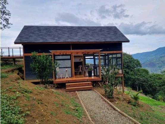 baño social completo con ducha, cocina con mesón en cuarzo, cubierta eléctrica de inducción vitrocerámica de 4 puestos, lavavajillas, mueble con torre de hornos y de almacenamiento. Piso en cedro. Predial anual $1.200.000. Tiene sembrado limón mandarino. Hay ruta de colectivo de 4am.a 9pm. A 40 metros hay otra finca similar por si le interesa comprar las 2 se le daría un precio especial.