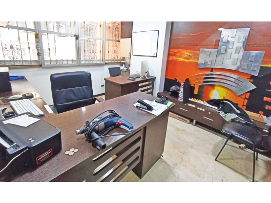 La oficina con lindos acabados, pisos en mármol, está en el primer piso del edificio, destinada a uso comercial o profesional por escrituras, con posibilidad de adaptarse para vivienda. Con un área de 40 m2 en cuerpo cierto, 22 m2 por escrituras. Con vista exterior, consta de 2 ambientes, para recepción y varios puestos de trabajo, un baño con closet (se puede volver a instalar ducha allí) y con posibilidad de hacerle cocineta.